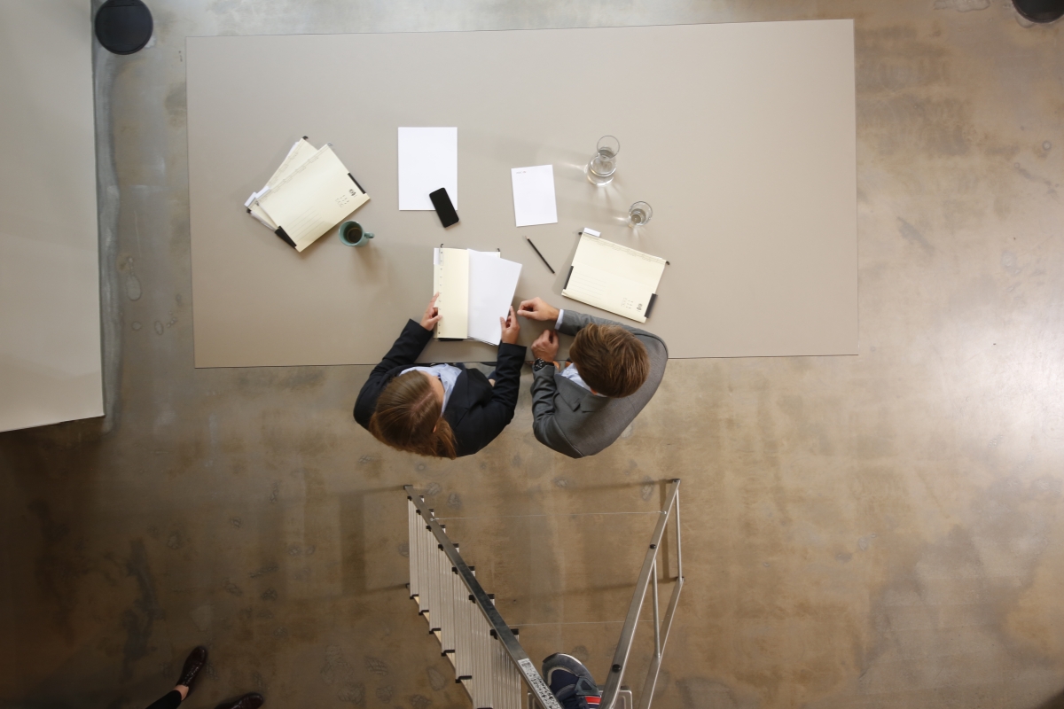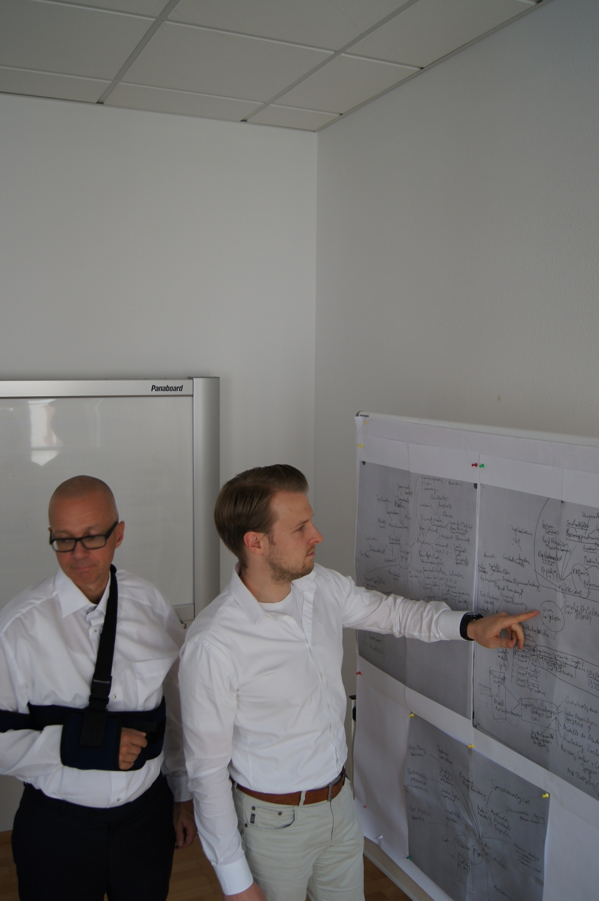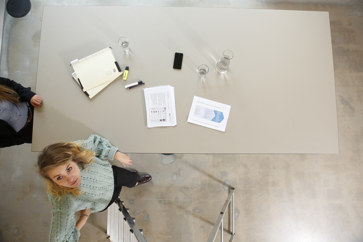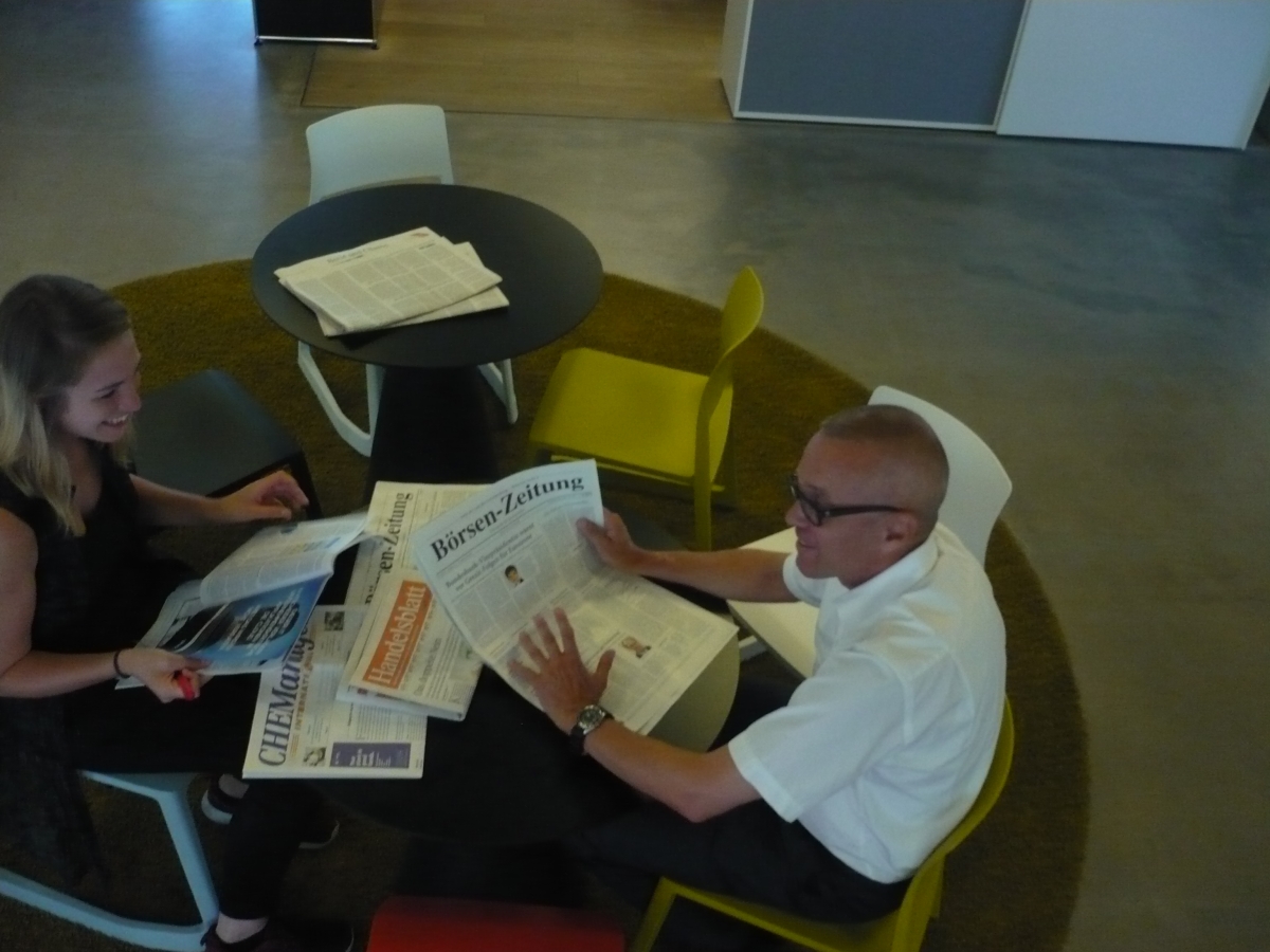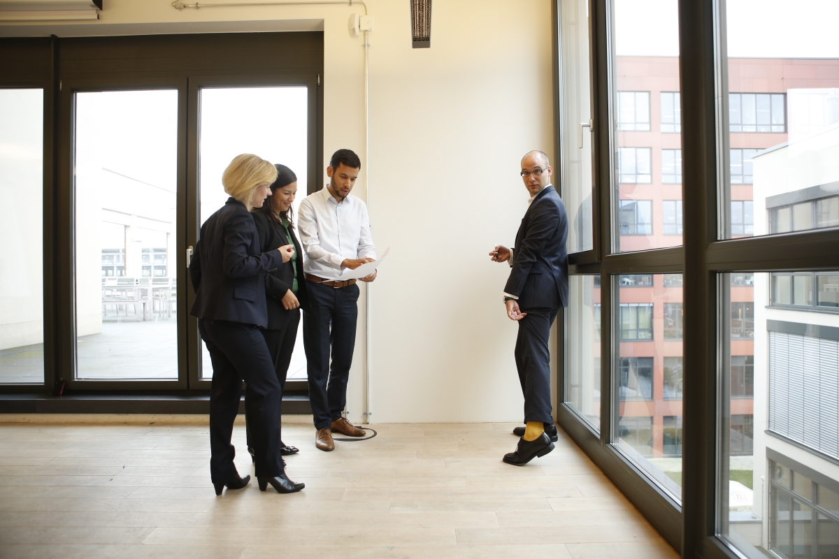 Ein weiteres mögliches Motiv für das Geschäftsführungs-Foto: Berater und Grafik-Desginer stehen Modell für den Test der Lichtverhältnisse auf der Dachterrasse.