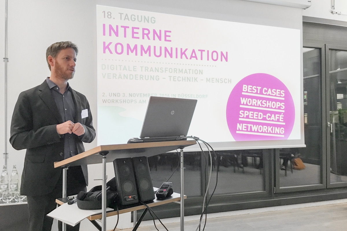 Ins Land der Märchen entführten Steffen Henke, Leiter Interne Kommunikation von Vodafone Deutschland, und Martin Müller (ebenfalls Vodafone) die Zuhörer mit ihrem Vortrag „König Content verlässt sein Land – Interne Kommunikation im digitalen Zeitalter“. Sie sehen die Interne Kommunikation sogar als Treiber der digitalen Transformation, da sie seit jeher der wahre Gestalter von Change-Prozessen in Unternehmen sei. Dabei komme es darauf an, gute Geschichten zu erzählen, um weiterhin relevant zu sein und um in Zeiten von internen Social Communities und wachsender Konkurrenz um Aufmerksamkeit Gehör zu finden.