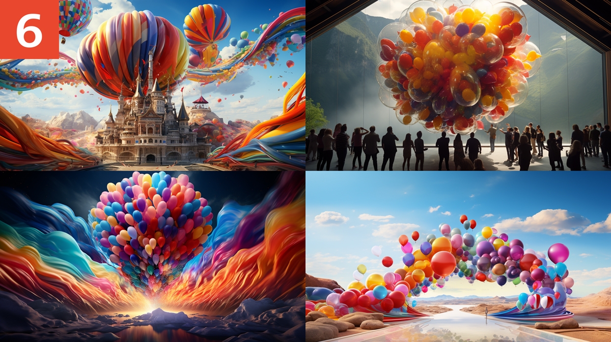 Als nächstes versuchen wir es mit ChatGPT in der Hoffnung, dass die Text-KI eher versteht, worum es geht. Der Prompt für ChatGPT: „schreibe mir einen prompt für midjourney. inhalt sollte ein teamevent mit 400 mitarbeitern sein. das Motto lautet "Own your business" und als zentrales interaktives spiel wird eine Kettenreaktion sein, die die mitarbeiter eigenständig aufbauen sollen." Daraus resultiert der Prompt für Midjourney: An impressive visual spectacle unfolds before our eyes. The image shows an exciting scene that presents itself like a living painting of creativity and team spirit. In the center of the image is an artfully designed construct that embodies the central chain reaction. The starting point of the reaction is a colorful balloon that gently inflates, ready to release the energy. This balloon is strategically positioned to nudge a boxing glove resting on an inclined ramp. The boxing glove is set in motion and hits a series of wooden blocks placed in a cascading formation. The wooden blocks fall into a series of spirals that transmit the energy and direct the movement in curved paths. A colorful slide serves as a transitional element and carries a colorful ball downward. This ball hits a larger bowling ball, which in turn is nudged by a clever mechanism. The bowling ball races over a platform on which a hammer is placed in position. The hammer will come crashing down with momentum onto a series of small balls, which will then begin to move. These small balls make their way along an elaborate path of tubes and rails before finally driving a large pendulum. The pendulum swings wide and triggers a mechanical lever that sets a dominating ball rolling. This final ball occurs as the epic conclusion to the chain reaction, causing the entire mechanism to shake. The scene is filled with dynamism, and the elements are vibrant and colorful. Light reflections play across the various surfaces, highlighting the movement and interaction of the elements. The scene exudes creativity, collaboration and the triumph of team effort. --ar 16:9 --v 5.2