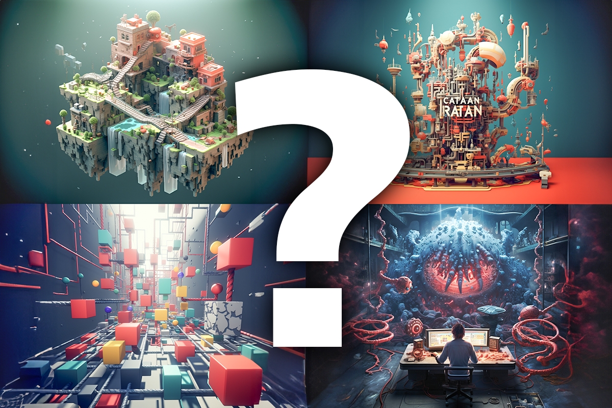 Dabei kommen für eine Aufgabe meist mehrere Programme zum Einsatz, typischerweise Midjourney und/oder Stable Diffusion sowie zwischendurch und am Schluss zur Bildbearbeitung Photoshop. Für die Generierung von Prompts lassen wir uns manchmal auch von ChatGPT unterstützen. Die Ergebnisqualität schwankt noch stark – die Kreativität ist interessant, die Treffsicherheit der Programme können wir bisher auch durch variiertes Prompten kaum verbessern. Auffällig ist auch der Stil, der sich stark an die Videospiel-Ästhetik anlehnt (siehe Fallstudien mit unseren Experimenten).
