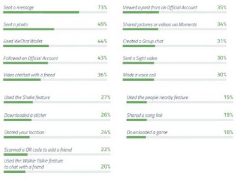 WeChat’s multiple uses and their frequency of use (Blue Focus 2018)