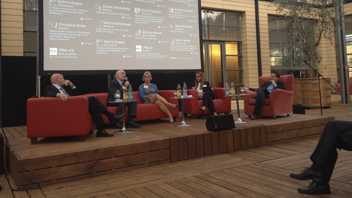 Die Podiumsdiskutanten bleiben in ihrer Prognose zurückhaltender und blicken in die nahe Zukunft der Kommunikationsbranche. Hier sehen sie Trends, die sich schon heute in der Wirtschaft abzeichnen: Verlagernde Absatz- und damit Kommunikationsmärkte, Digitalisierung und Globalisierung. Der schnelle Wandel in der Kommunikationsbranche ist gewiss und daran sind sich (fast) alle einig. Die Digitalisierung und ihr Einfluss auf Geschäftsprozesse und -modelle ist einer der größten Treiber, der ein Umdenken erforderlich macht.
