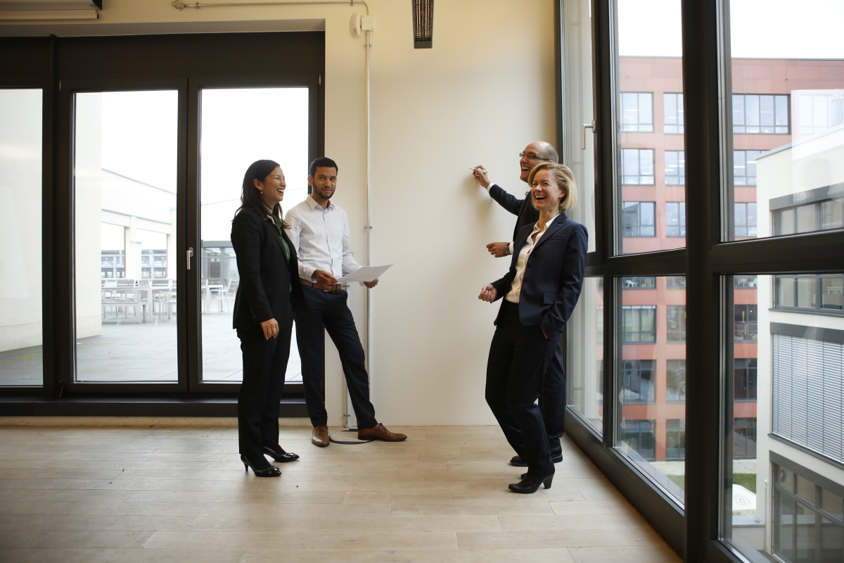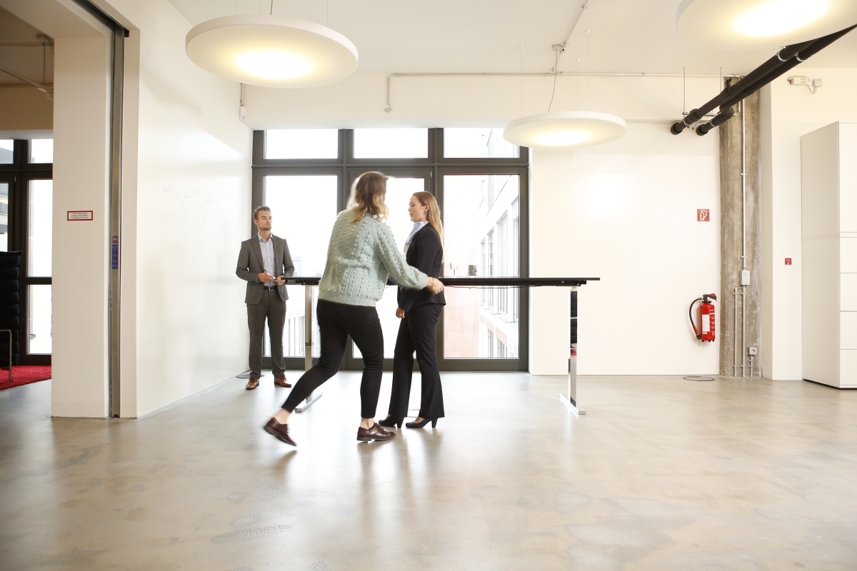 Ein weiteres mögliches Motiv für das Geschäftsführungs-Foto: Berater und Grafik-Desginer stehen Modell für den Test der Lichtverhältnisse auf der Dachterrasse.
