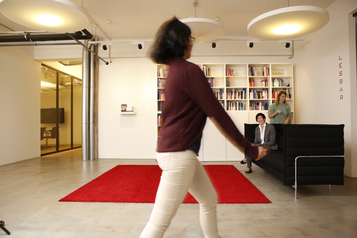 Schöpferische Pause oder Probesitzen für ein Fotomotiv? Dieser Frage wollte wohl auch Oliver Chaudhuri nachgehen, als er Grafik Designerin Sarah Weber auf dem Sofa überraschte.