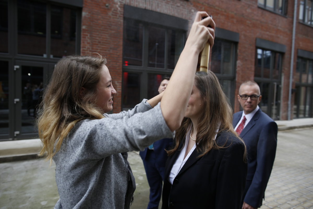Neue Perspektiven: Jörg Pfannenberg und Sarah Weber als Testmodels auf der Plaza.