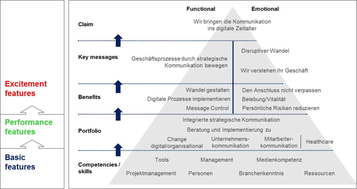 Management-Tools, die funktionieren. Hier die Botschaften-Pyramide des neuen JP│KOM Brandings.