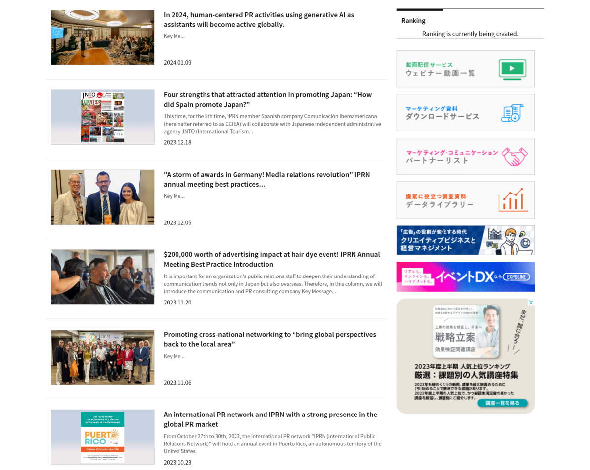 Our partner agency Key Message International (KMI) was very successful in placing articles about the IRPN Annual General Meeting in Japanese trade media. CEO Iwasawa Koichi's reports on AdverTimes provide comprehensive insights into the key themes, discussions and outcomes of the conference. Although originally written in Japanese, these pieces are easily accessible through automated translation into English or German, ensuring that we can experience what was shared and achieved at the IPRN meeting through the eyes of a Japanese PR professional.