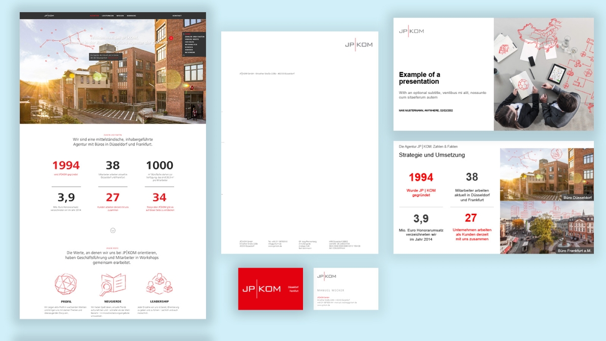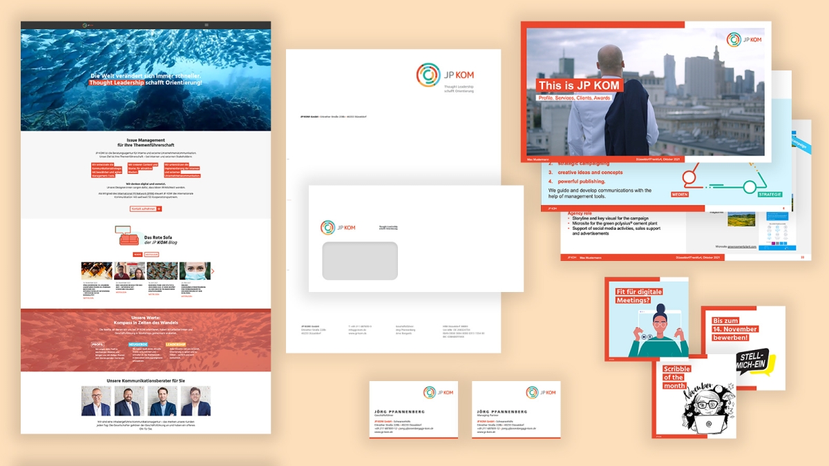 Das Logo und Basis-CD von JP KOM rührt aus dem Gründungjahr 1994, das letzte Update der Bildwelt und der Website ist auch schon knapp 10 Jahre her. Jetzt haben Inhaber Jörg Pfannenberg und Chef-Gestalter Jochen Kirchhof das Design und die Website komplett erneuert. JP KOM präsentiert sich jetzt als Agentur für Thought Leadership, das neue Logo symbolisiert die moderne Öffentlichkeit.