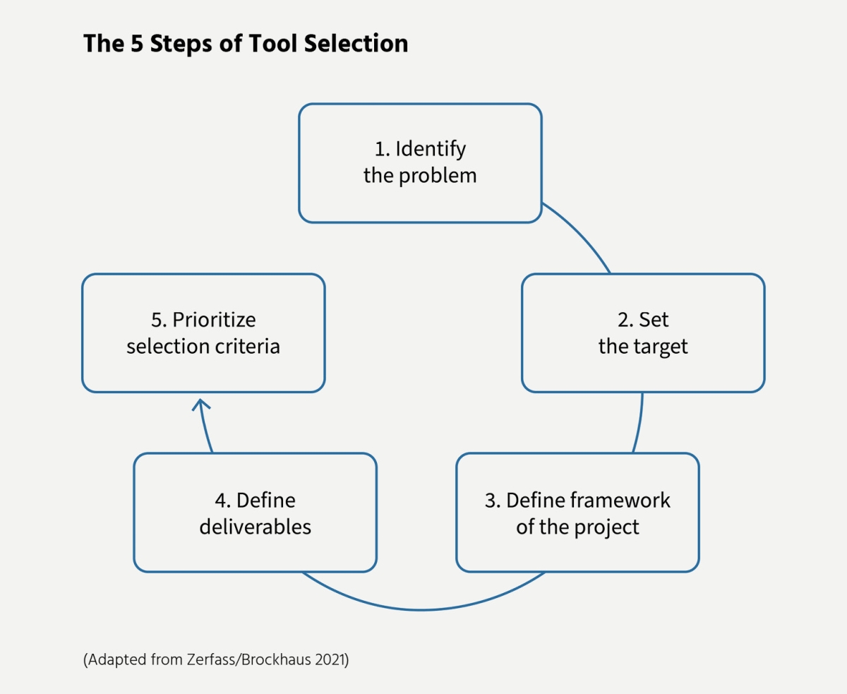 Accordingly, management processes and tools must be incorporated into the development of communication strategies. Nowadays, strategy developments must be carried out as a management process with transparent tools – as has long been the case in management consultancies and in corporate management. Only if the strategy development process is configured as a sequence of successive working tools do comprehensible and convincing decision templates emerge in which the strategy of communication is docked onto the strategy of the company/organization.