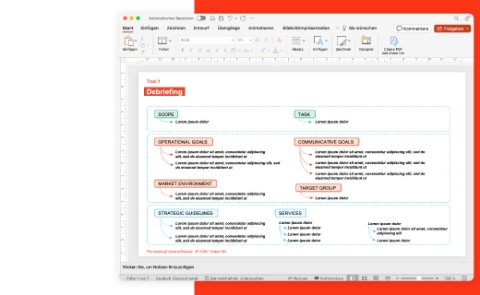 Briefings often do not have a stringent logical structure. I.e., situation descriptions, objectives, market backgrounds and ideas for measures are mixed up, there are repetitive structures and gaps in content. Therefore, in the debriefing, the contractor summarizes in a structured way how he understood the task.