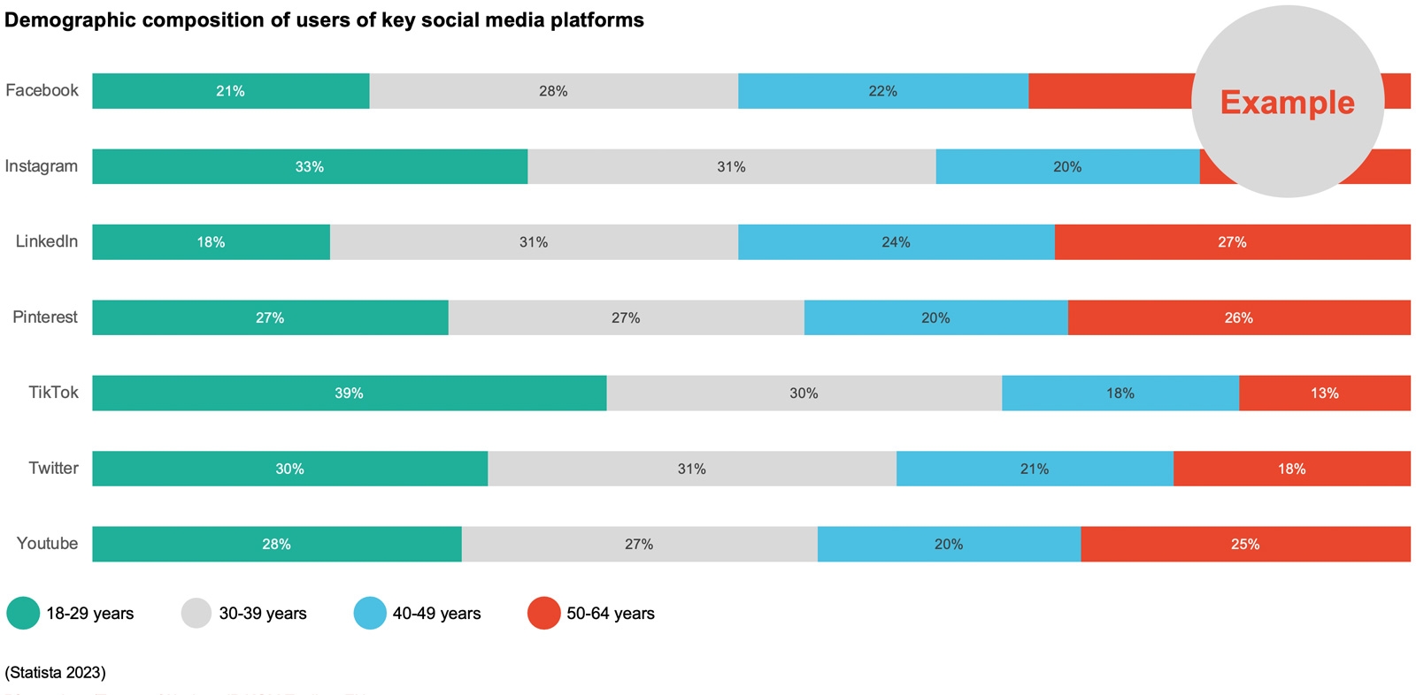 These studies are usually based on surveys, and in some cases also on web tracking results. They are available, both globally and for individual regions/countries, for different types of channels such as social media, and for overall populations as well as for individual stakeholder groups and segments.