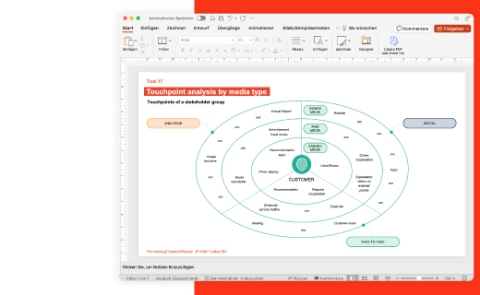 The tool can be used both to record the ACTUAL touchpoints and – in strategy development – to define the TARGET touchpoints. Alternatively, the Customer Journey TARGET tools (see Tools 74 and 75) can be used for the touchpoint analysis ACTUAL.