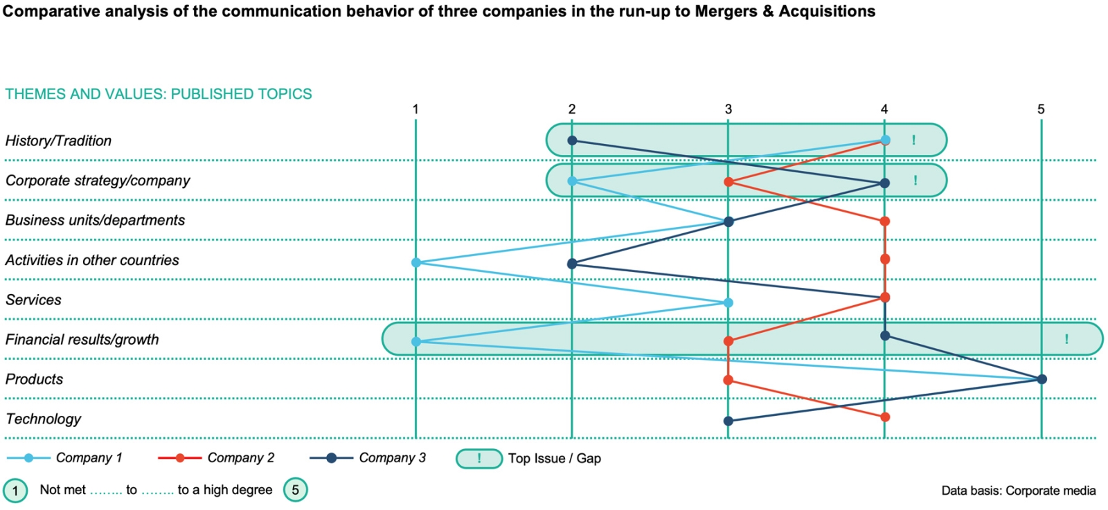 - Identify differences in communication behavior between companies, e.g., in the context of M&A