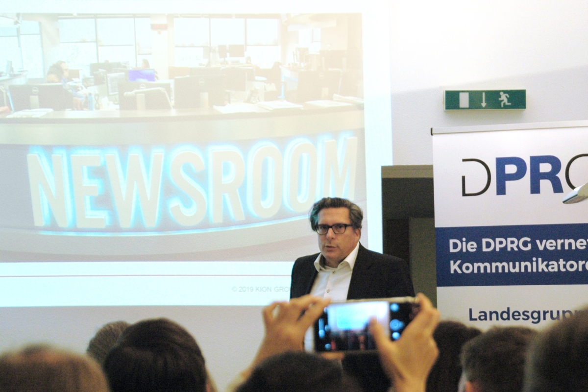 Frank Grodzki stellte den „Newsroom light“ vor, den er als Leiter der externen Kommunikation beim Intralogistik-Anbieter KION implementiert hat. Durch das neue Organisationsmodell konnte die KION Group als Dach über der Mehr-Marken-Struktur präsenter werden und ihre globalen Kommunikationsaktivitäten besser vernetzen. Die Mitglieder des Newsrooms wirken als Themen-Multiplikatoren in das Unternehmen hinein. Und so funktioniert der Newsroom bei KION: