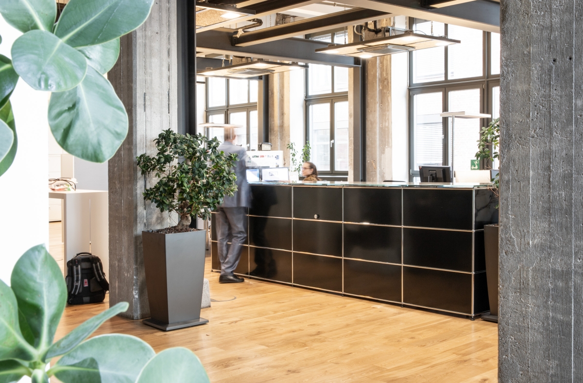 „Der Vibe ist einfach gut. Alles ist offen und hell. Der Industriecharme erinnert an die alte Fabrik und trotzdem arbeiten wir in einem hochmodernen Büro. Perfekte Kombi!“